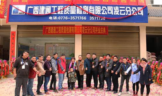 2016年1月27日下午4點18分,在燦爛的陽光下,伴著喜慶的禮炮聲,集團副總裁黃承理及廣西建通工程質量檢測有限公司總經(jīng)理陸虹任為代表的集團高層領導共同為檢測凌云分公司開業(yè)揭牌并宣布廣西建通工程質量檢測有限公司凌云分公司正式開業(yè)!到場嘉賓紛紛為凌云分公司的開業(yè)致以了真誠的祝福。