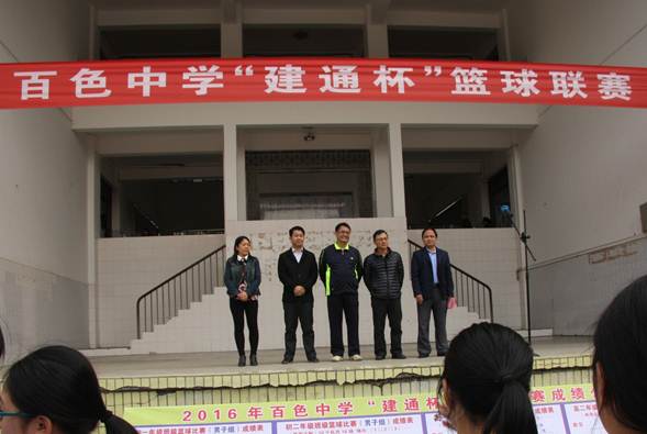 2016年3月14日下午集團(tuán)副總裁羅 杰、集團(tuán)副總裁韋 霖應(yīng)邀參加在百色中學(xué)舉辦的2016年百色中學(xué)“建通杯”籃球聯(lián)賽的開幕儀式,為豐富師生課余校園文化生活,搭建學(xué)生展示自我的平臺,鼓勵(lì)全面提高學(xué)生素質(zhì),廣西建通投資集團(tuán)為本次聯(lián)賽活動(dòng)捐助1萬元作為聯(lián)賽資金。
