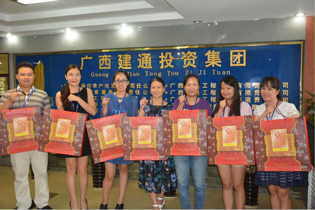 中秋節(jié)前在集團(tuán)董事會(huì)秘書(shū)處工作人員的引導(dǎo)下,集團(tuán)百色總部全體員工喜笑顏開(kāi)的匯集在建通創(chuàng)業(yè)大廈和建通時(shí)代廣場(chǎng)中心,領(lǐng)取集團(tuán)精心準(zhǔn)備好的中秋佳節(jié)禮品。205份中秋月餅在大廳堆積成一座座的山峰,百忙之中趕來(lái)的同事在井然有序的領(lǐng)取自己的月餅后,展示出最甜美的笑容和其他同事拍照留影紀(jì)念。這不僅僅是一份中秋禮物,更代表著集團(tuán)對(duì)每一位員工表示深切問(wèn)候和誠(chéng)摯的感謝,感謝全體員工一年四季堅(jiān)守在自己的工作崗位上,辛勤的為集團(tuán)的發(fā)展壯大而努力。