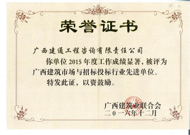 二〇一七年一月六日,廣西建筑業(yè)聯(lián)合會建筑市場與招標(biāo)投標(biāo)研究分會2016年年會暨表彰大會在南寧市鳳凰大廈隆重舉行,我集團(tuán)旗下子公司廣西建通工程咨詢有限責(zé)任公司作為理事會員單位及2015年度廣西建筑市場與招標(biāo)投標(biāo)行業(yè)先進(jìn)單位獲得者受邀參加了此次會議,我集團(tuán)副總裁謝乃鵬出席了本次會議并作為獲獎單位代表接受了表彰和榮譽(yù)。