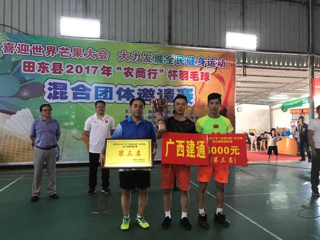 7月1日至2日,建通集團(tuán)球隊(duì)健兒應(yīng)邀參加由田東縣文化和體育廣電局組織舉辦的為期兩天的2017年“農(nóng)商行”杯羽毛球混合團(tuán)體邀請(qǐng)賽。經(jīng)過(guò)緊張激烈角逐,我集團(tuán)獲得了混合團(tuán)體邀請(qǐng)賽季軍的好成績(jī),冠軍被紅城1隊(duì)獲得。