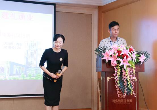 為提升集團的整體商務形象,增強集團員工的文化素質(zhì)修養(yǎng),由建通投資集團百色總部組織的《商務禮儀培訓》課程于2018年4月28日上午九點整在維也納國際酒店如期舉行。本次培訓邀請了全國專業(yè)人才委員會禮儀委員、國家高級禮儀培訓師、國家高級禮儀(禮賓)師青羽老師擔任講師。