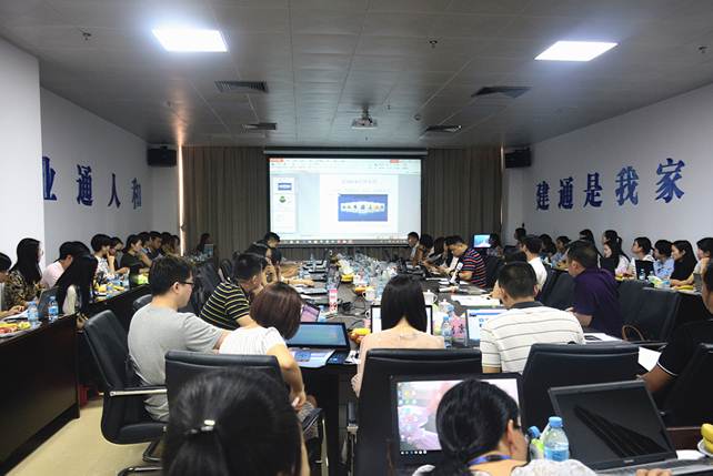 根據(jù)集團辦公自動化系統(tǒng)建設(shè)的總體安排,集團“建通寶”OA系統(tǒng)初步搭建及調(diào)試工作已完畢,即將在集團范圍內(nèi)以及合營分公司上線運行,為使集團總部各部門、集團各事業(yè)部、各合營分公司(區(qū)內(nèi))能夠熟練掌握OA系統(tǒng)操作,確保工作正常開展,促進集團與合營分公司(區(qū)內(nèi))之間的交流聯(lián)系,建立良好合作基礎(chǔ),集團于2018年5月31日在建通中心2號樓A座2樓會務(wù)中心舉辦“建通寶”OA系統(tǒng)操作培訓(xùn)。集團常務(wù)副董事長羅 程、集團副總裁羅 杰、集團總裁助理熊莎莎、 集團第二秘書處秘書長覃艷妙及集團總部各各部門/各事業(yè)部/各合營分公司(區(qū)內(nèi))負責(zé)人及OA系統(tǒng)專職人員共計90人參加, 本次培訓(xùn)由集團常務(wù)副董事長羅 程主持。