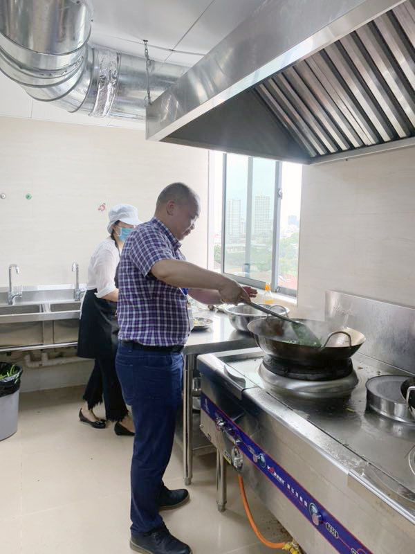 全新的職工食堂整潔溫馨,廚具設(shè)備干凈衛(wèi)生,各類設(shè)施一應(yīng)俱全。職工們自覺(jué)在窗口排隊(duì)取餐,秩序井然,坐在寬敞明亮的食堂里,愉快的享用著新鮮美味的飯菜,大家一上午工作的疲憊似乎也隨之而去。“自家食堂做的飯菜不但衛(wèi)生有保障而且還好吃!”……一聲聲贊美之語(yǔ)中,職工們紛紛豎起大拇指為集團(tuán)南寧總部職工食堂點(diǎn)贊。大家真切感受到來(lái)自集團(tuán)無(wú)限的關(guān)懷。營(yíng)業(yè)當(dāng)天,集團(tuán)副董事長(zhǎng)謝乃鵬還親自下廚為大家烹制美食。